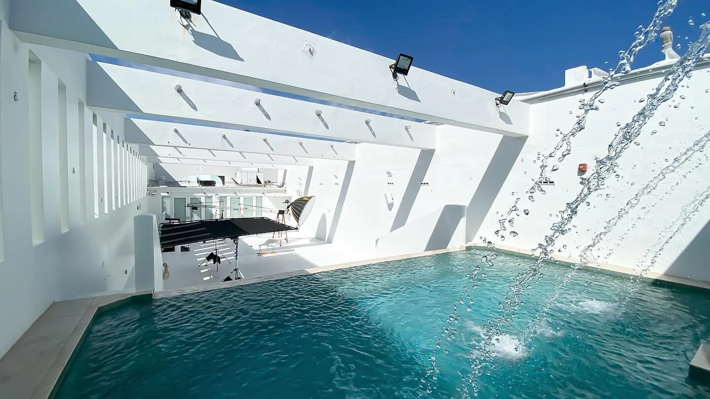 The daylight studios outside terrace is a phenomenal architecturally beautiful space. Described as Miami Art Deco meets Santorini Greece, the white canvas under blue Miami skies provides a stunning backdrop for photoshoots and video. The water feature is accessible for underwater shoots or water scenes for still and motion video.